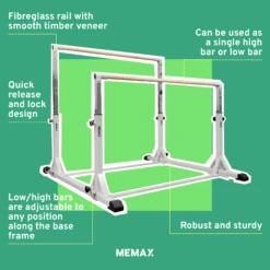 MEMAX Elite Uneven Bar(Advanced Gymnastic Uneven Bars Parallel Bar Fibreglass Rail)